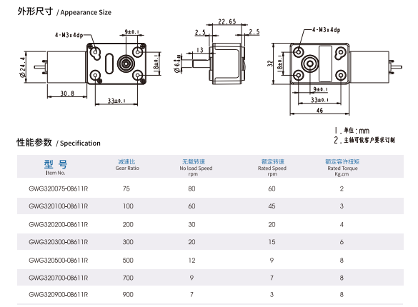 - 外径:φ32;速比:1/75-1/900;额定容许扭矩(N.m):0.2-0.78